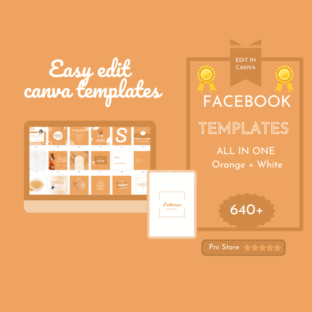 640++ Facebook Templates Orange White | Facebook Branding | Social Media Template | Facebook Post | Cover