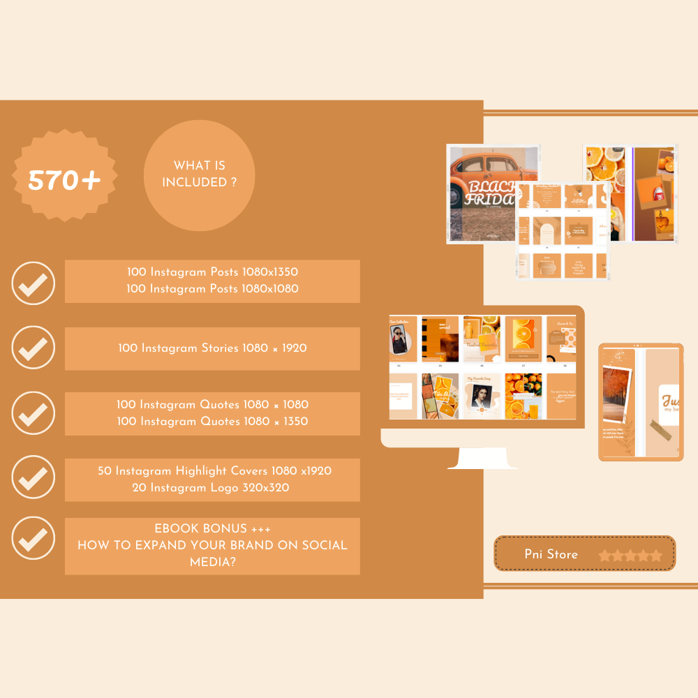 ALL IN ONE 600++ ORANGE WHITE INSTAGRAM TEMPLATES